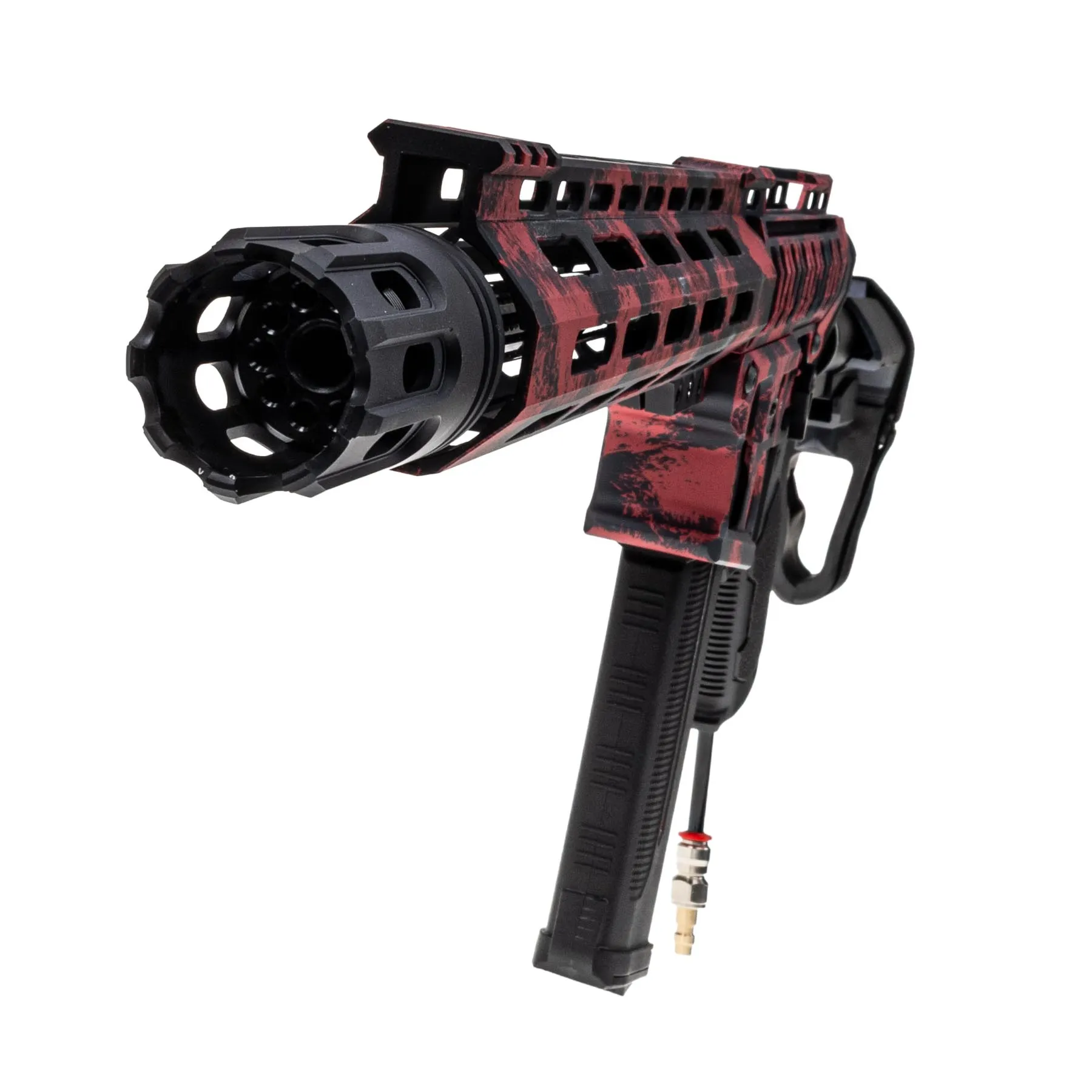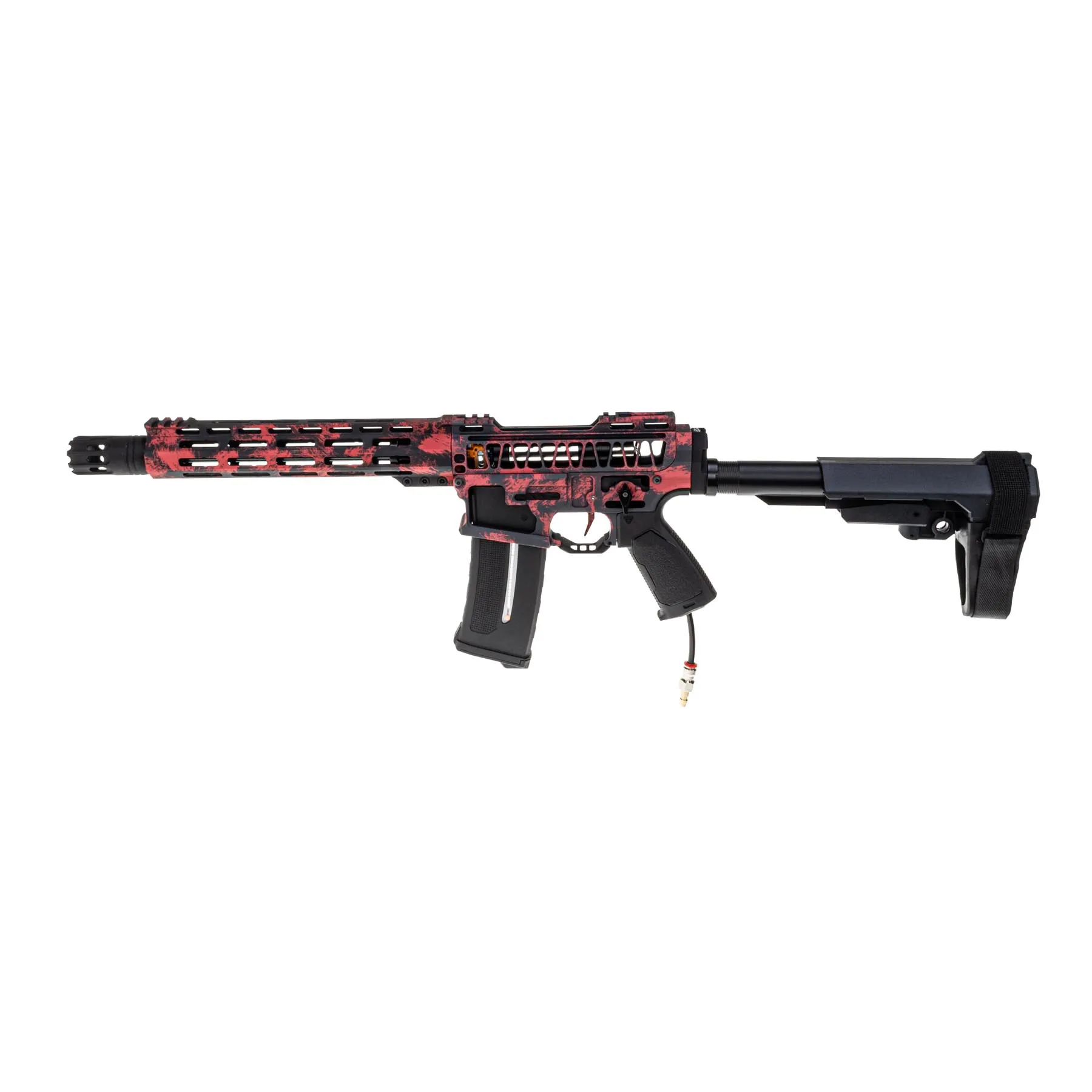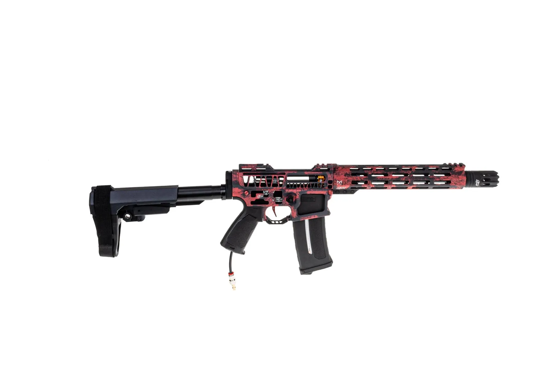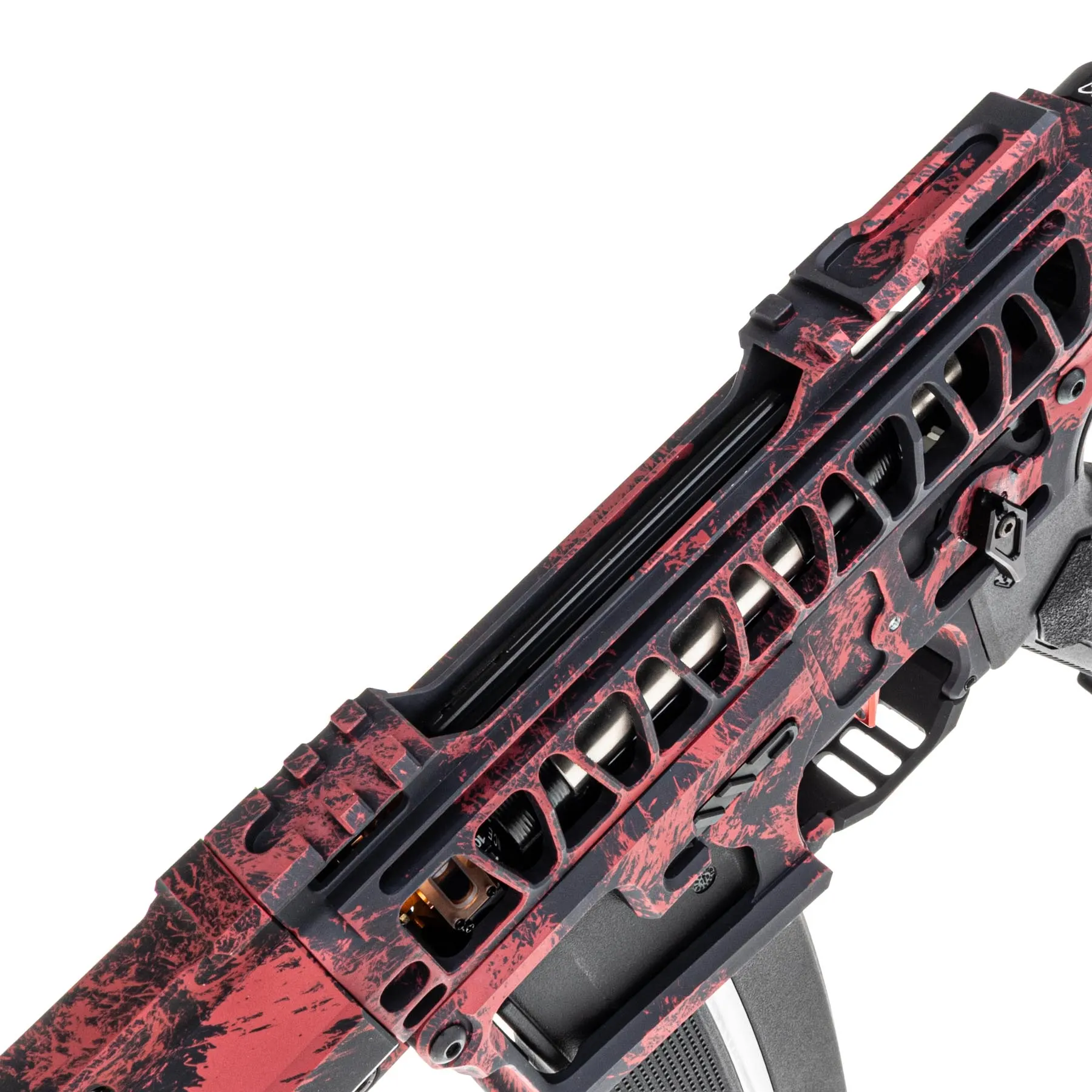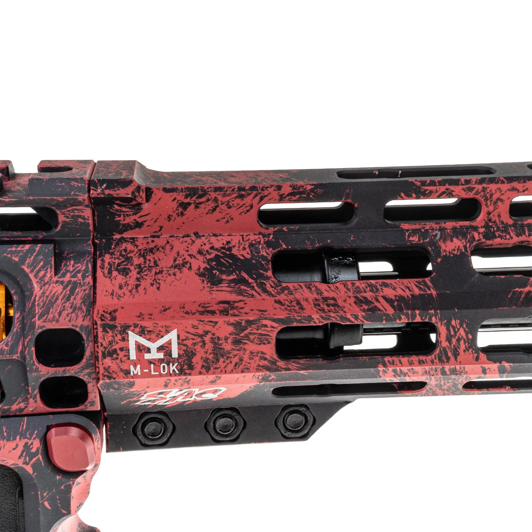 Das Gehäuse der SAC WOLF EXO - "Odins Blutadler" besteht aus CNC-gefrästem Aluminium: der 10" Handguard, Upper und Lower Receiver sind federleicht und gleichzeitig extrem stabil. Gepaart mit einem CNC Ultralight Carbon Outer Barrel entsteht nicht nur eine faszinierende Optik, sondern auch eine Stabilität die seinesgleichen sucht! Die Bedienelemente wie Bolt Catch, Mag Release und Fire Selector sind ebenso aus CNC gefräßtem Aluminium – das sorgt für ein knackiges Feedback und langlebige Performance. Dazu hast du noch einen ansprechenden Amlifier von SAC der das Gesamtbild abrundet!