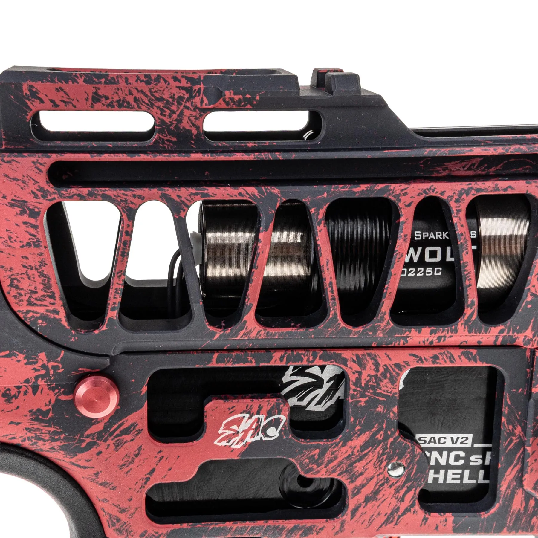 Die SparkLabs Wolf Engine liefert dir ein knackiges Ansprechverhalten und konstante Leistung. Die Engine ist eingebettet in unsere eigens entwickelte SAC CNC Aluminium Gearbox, die ein perfektes Alignment von Engine zu Hop-Up Kammer garantiert. Zudem ist diese in einer Ultralight dennoch super robusten Bauweise gefertigt.